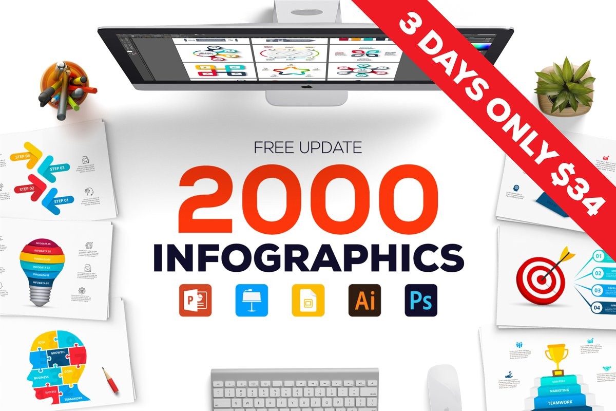Probably the biggest bundle of infographics templates - more than 2000 infographics. You will not need to buy another pack in your life. All the updates will be FREE to you.
