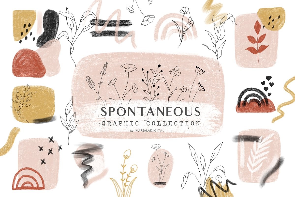 There are more than 2400 graphics for your awesome projects. Great for stationery, logos, branding, invitations, cards, posters, prints, mood boards, Instagram posts and more.
