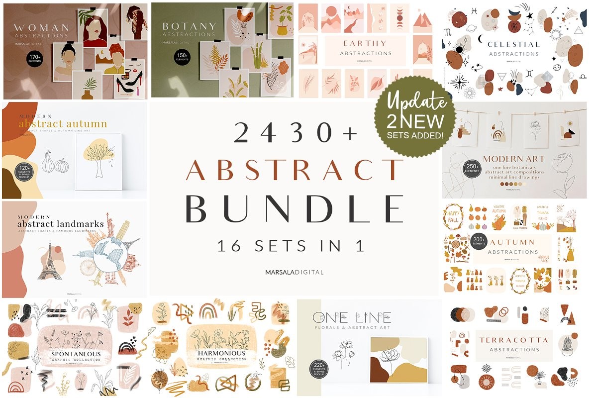 So happy to introduce our first bundle. 16 trendy abstract sets in 1! One Line Drawings and Abstract Art.
