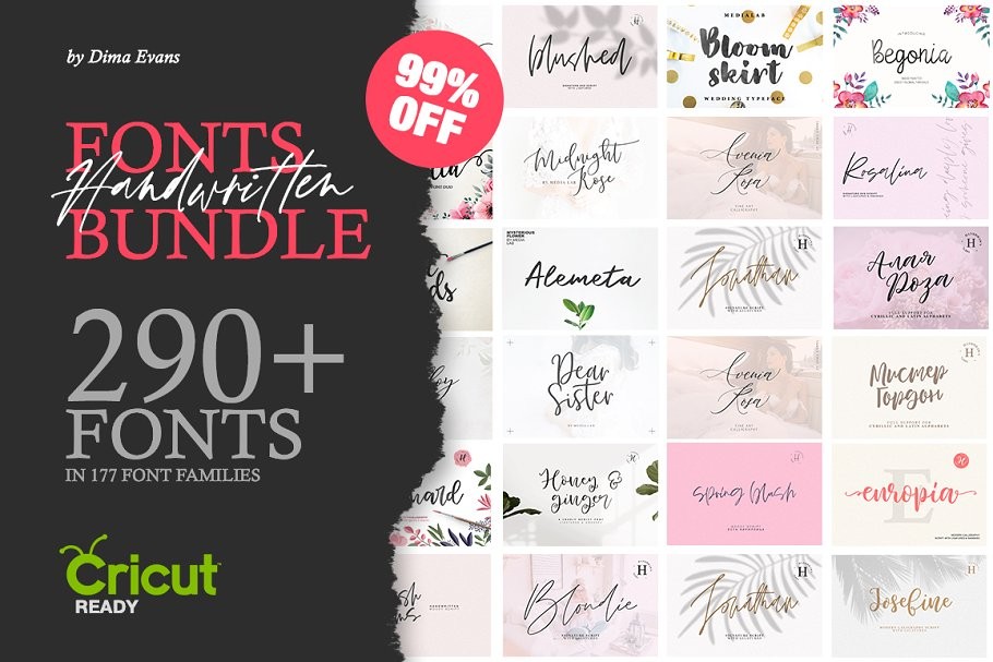 The bundle contains 290+ fonts in 177 font families. This means you're basically paying $0,07 per font. Now it is the largest font bundle on the market.
