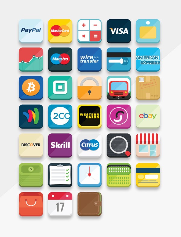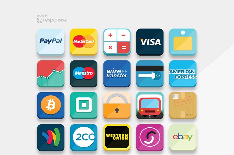 Today we are happy to feature a set of 33 flat e-commerce icons, created exclusively for Smashing Magazine by Responsive. The icons are ideally suited to e-commerce projects and include many popular payment providers, including Bitcoin.