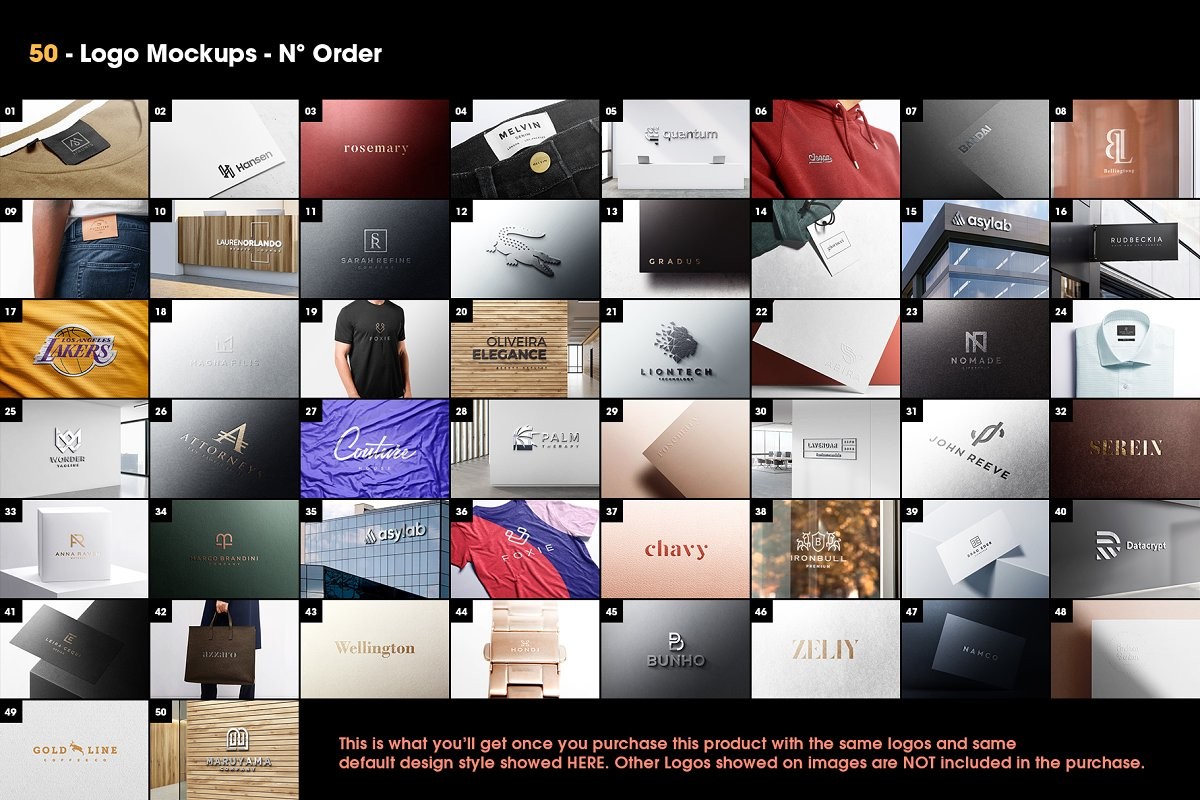 Our best logo mockups created yet with this bundle of 50 logo mockups bringing realistic effects mockups with various perspectives and most of them contains various styles type of logo from 3D, embossed, debossed, flat, silver, gold, etc. You can easily change and place your own design | Image with few clicks using Smart Objects. More info about each mockup, watch below.