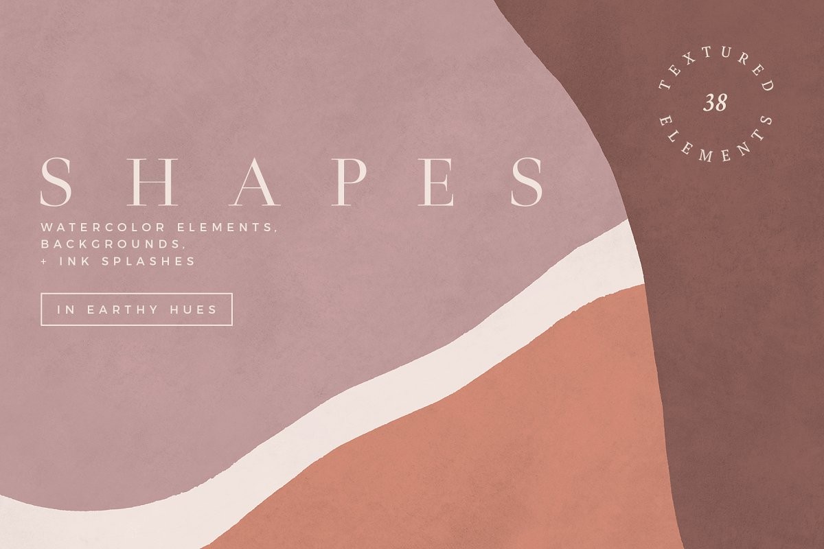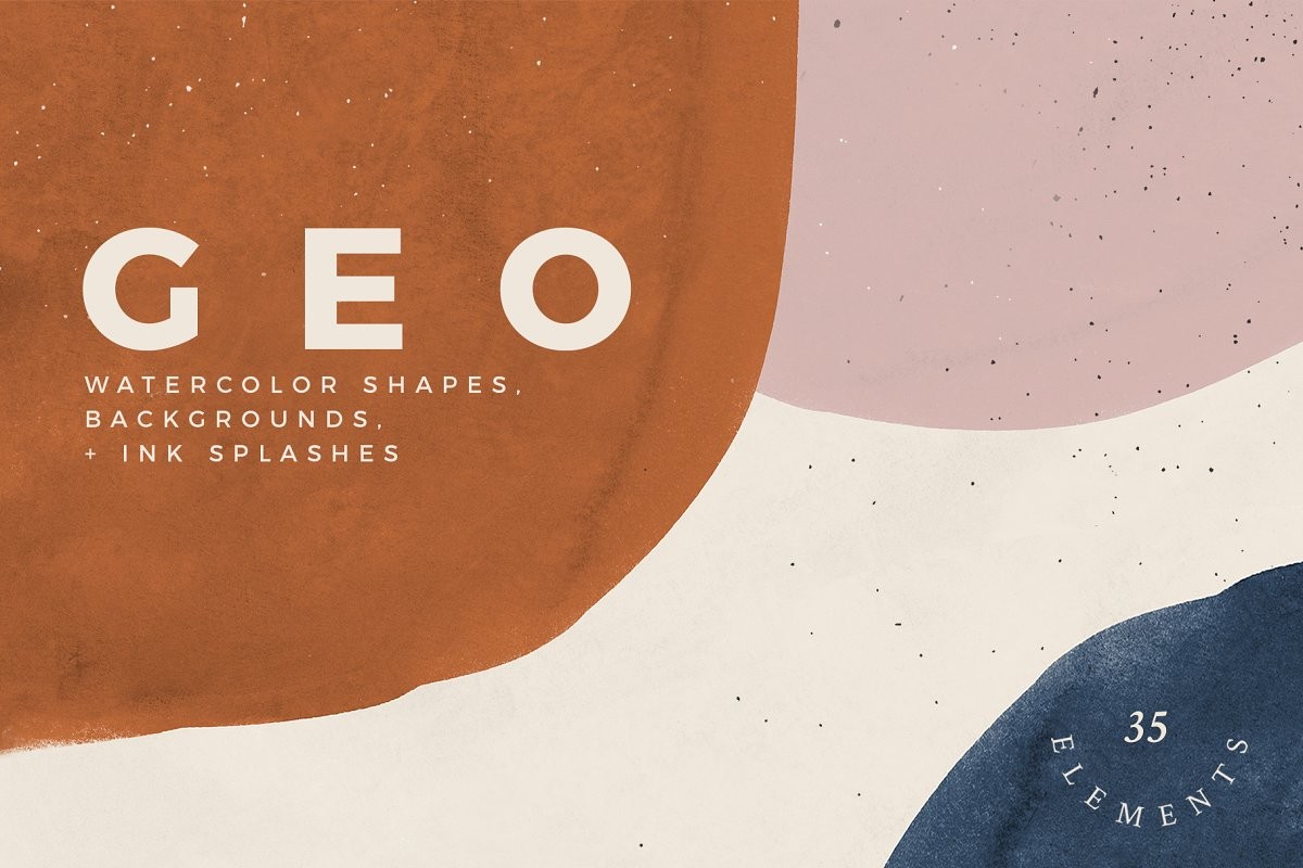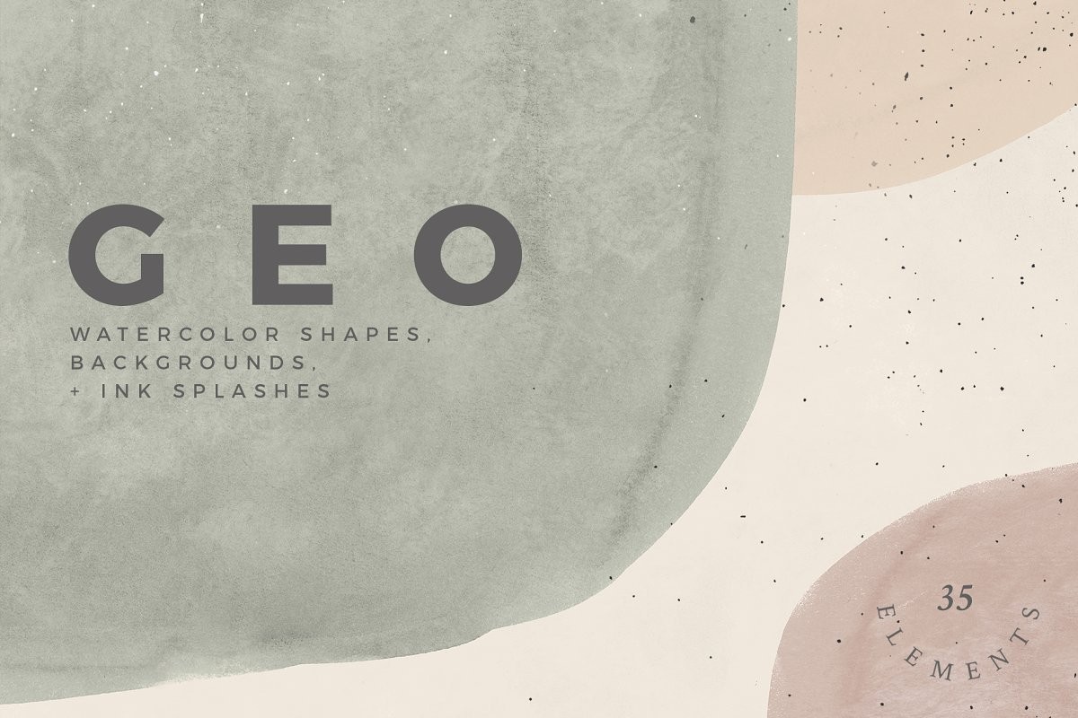 Hand-painted watercolor shapes, backgrounds, and ink splashes. Perfect for print and web projects such as wedding invitations, branding, greeting cards, and many other uses. Create your own compositions or use any of the pre-made backgrounds to get started.