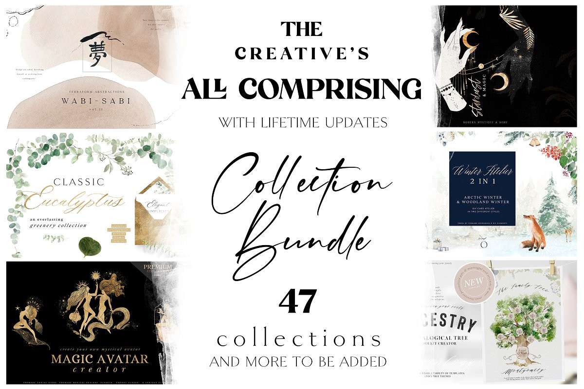 As the old year ends, starting with new and fresh energy the new year is of massive importance. Thats why I decided that the best way to celebrate the new beginning that the new year will bring, was to create an All Comprising Creator's Bundle that is not just that, is an opportunity to get new collections forever for no extra purchase. Thats right, the bundle will be updated and you will get the new updates as soon as they are up. PLEASE NOTE: Not ALL future collections will be included in this bundle. There will be collections that will not go in any bundle and they will be sold as stand alone items. That doesn't mean you will not get updates forever as the titles says. The bundle will be updated with new collections just not with all that I create!