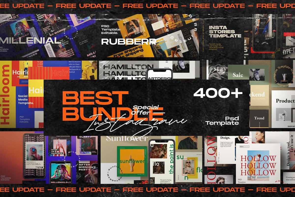Bundle Instagram Template Pack Get Items with a total of 400+ social media templates!! and It's Free update!