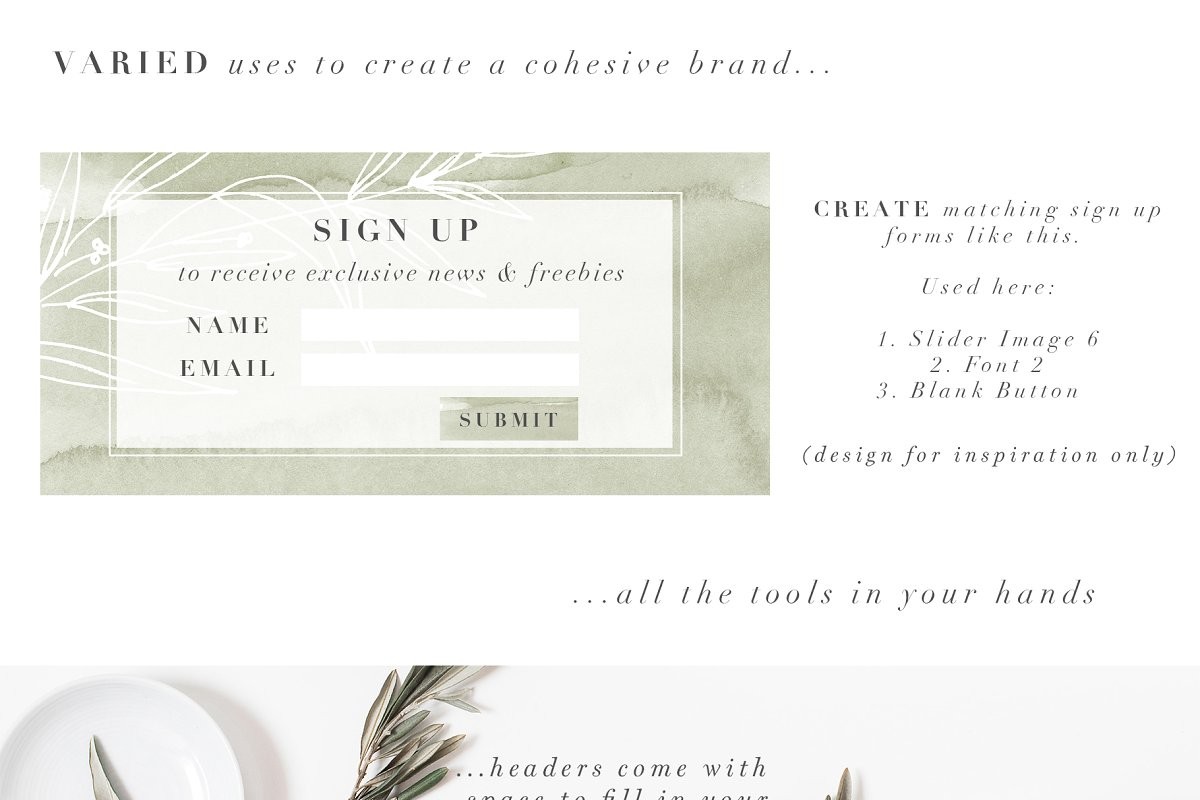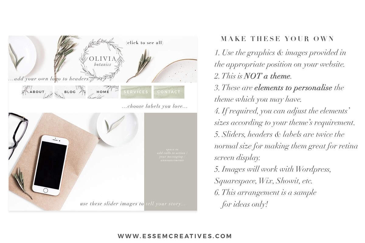 This Website Branding Bundle contains several coordinated headers, slider images, social media icons, image holders, labels, custom buttons to help you personalise your wordpress / squarespace / wix / showit / blogger theme. Instead of scouring the web for matching web elements, stock photos, watercolor accents - find all of it in one convenient place (and for one amazing price). This will allow you to get your blog done up in no time, so you can focus on getting and servicing your audience.