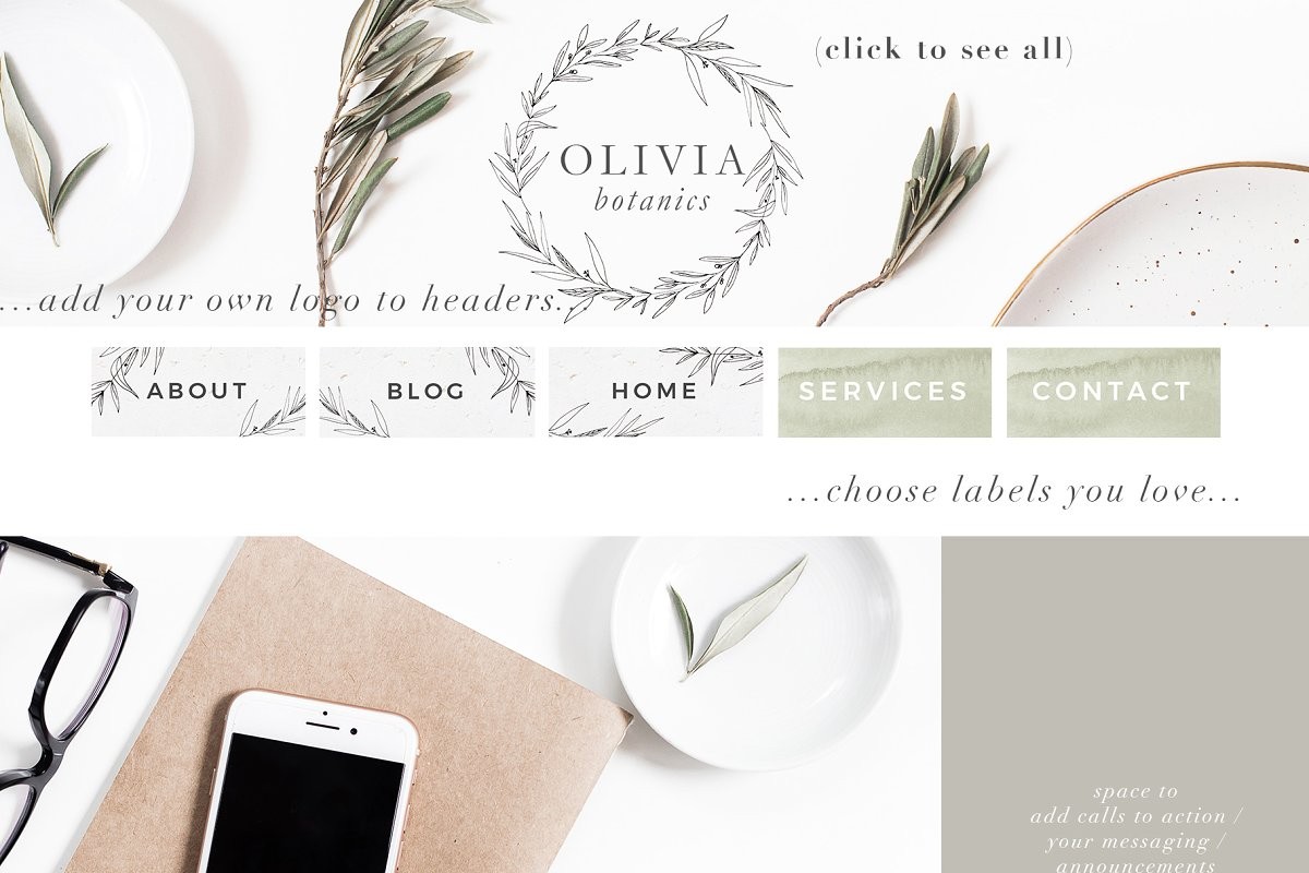 BOTANIC Website Blog Branding Kit contains graphic elements in a minimal, refined and feminine, Neutral, White & Black theme. If you're looking to create a modern, high-end brand which looks professional, yet is within your budget, then this is the Web Blog Branding Kit you're looking for.