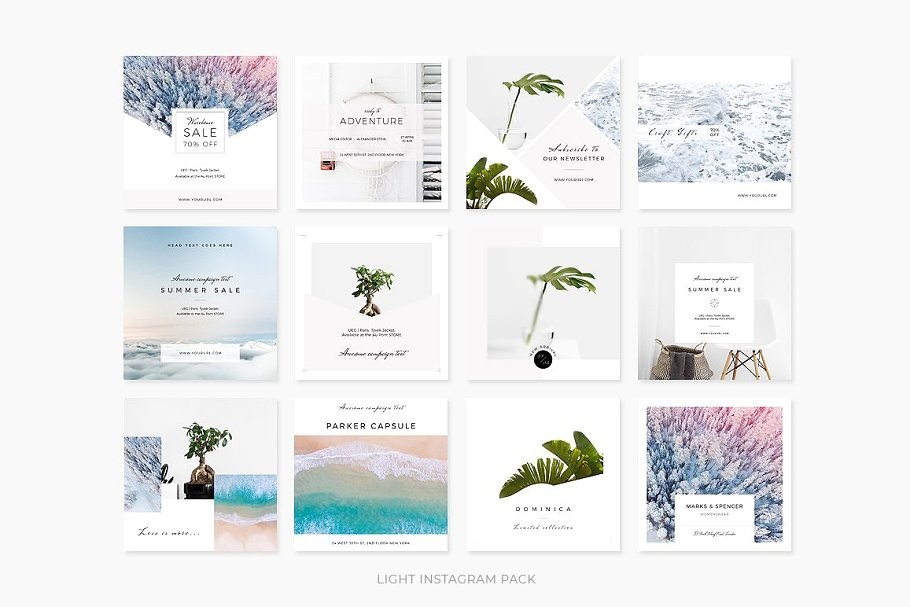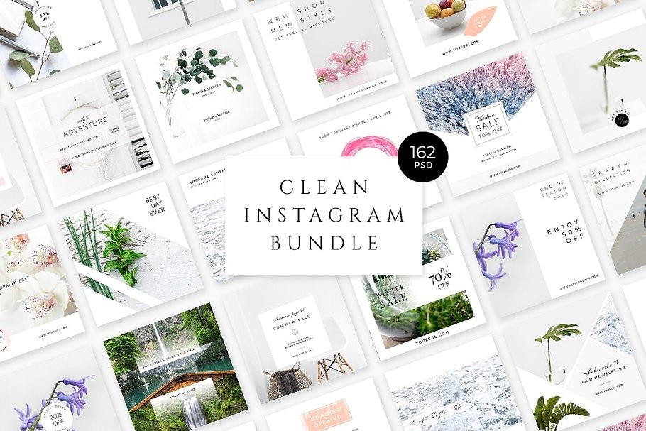 The product includes 162 templates designed natively for Instagram. However, you can also use the design on your Blog, Facebook and etc. The pack works correctly only in the program Adobe Photoshop CC / CS or Affinity Photo and Affinity Designer.