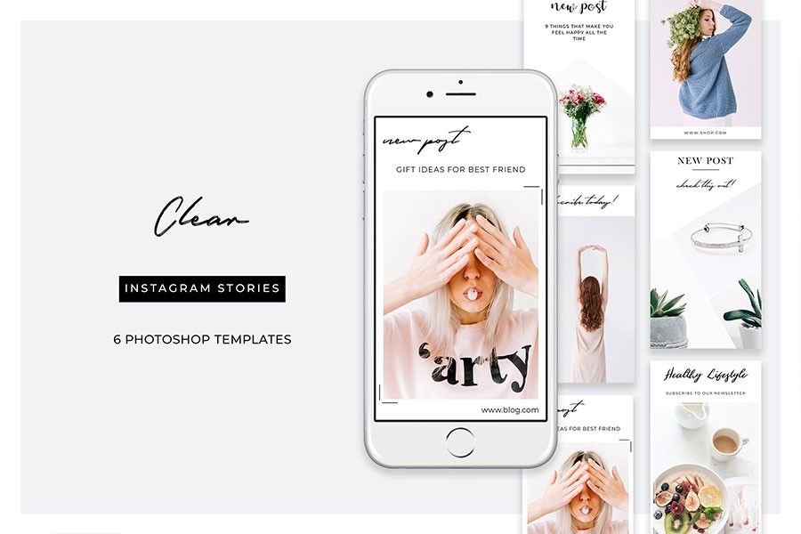 Clear Instagram Story Templates is here today by Stylish Design Studio. This template pack contains 6 high quality Photoshop templates for your Instagram. You can change all photos, texts, fonts and colors. These are great for Instagram blogger, advertising, and online shopping store.