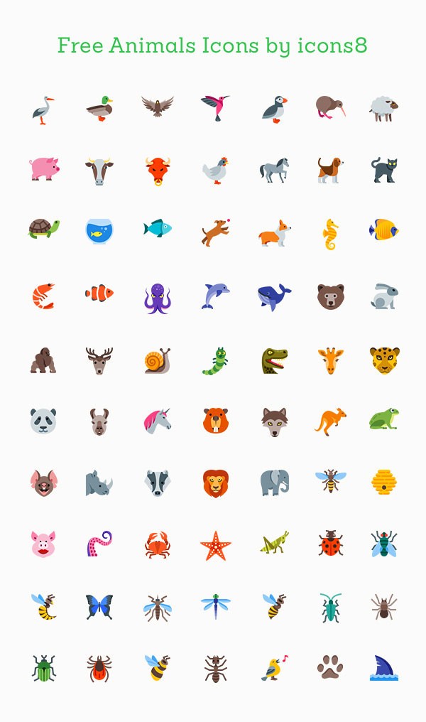 Here we have for you an animal themed collection of 71 colored icons that would make a nice addition to your resource library. All icons are fully scalable and come in multiple formats so you can easily use them in your projects.