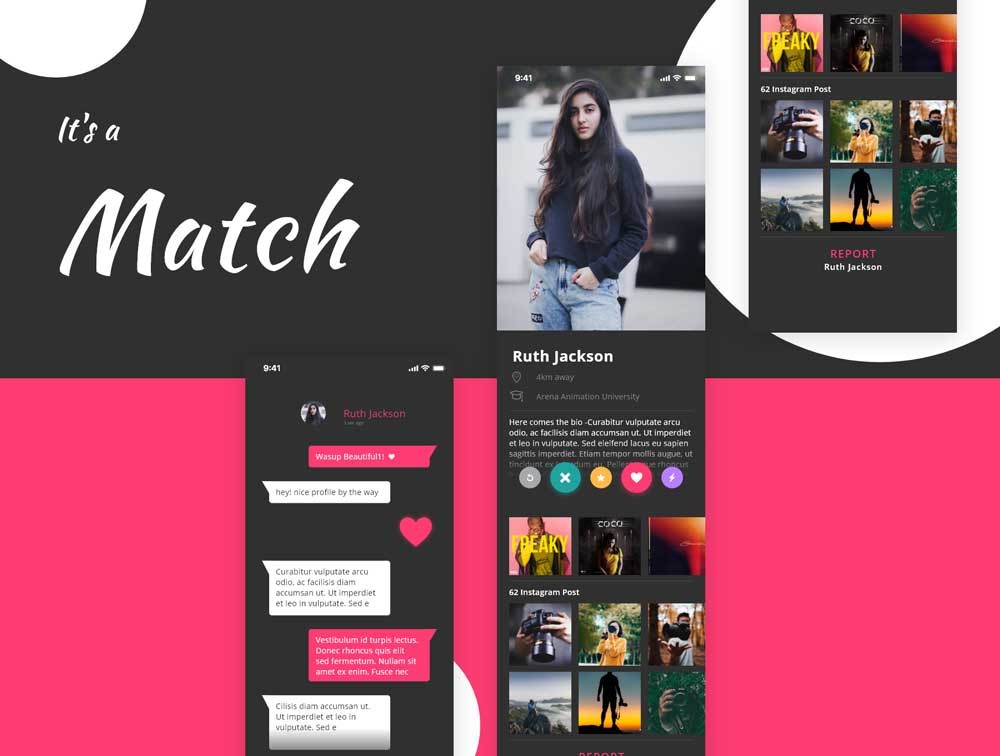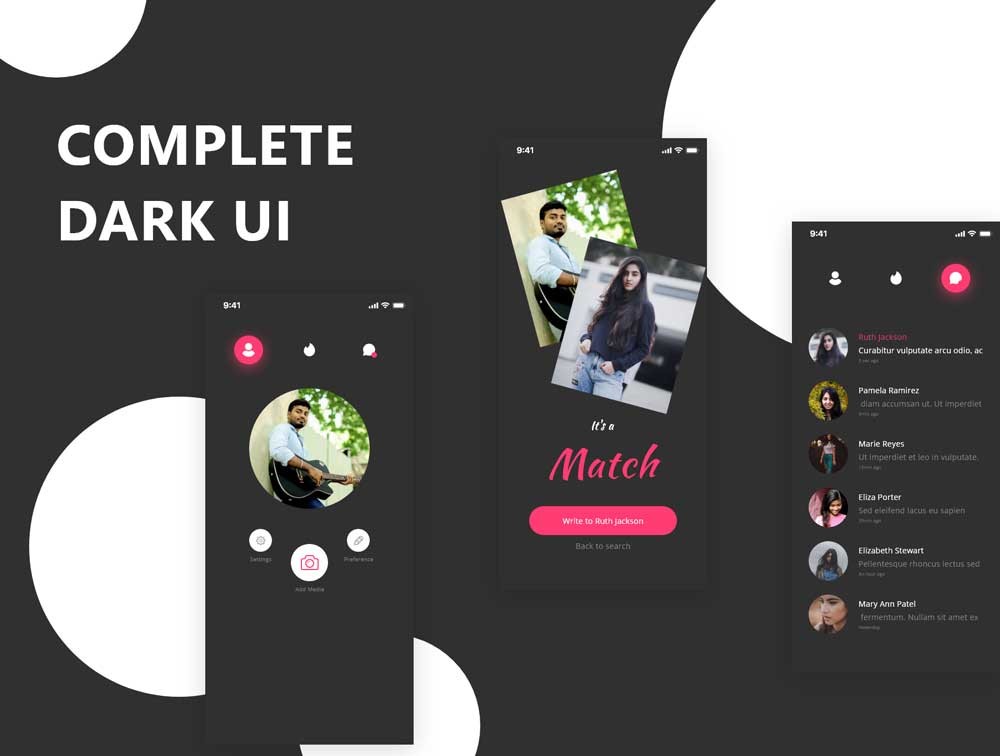 This is a complete redesign of the Tinder Dating App to the latest trend of Dark UI