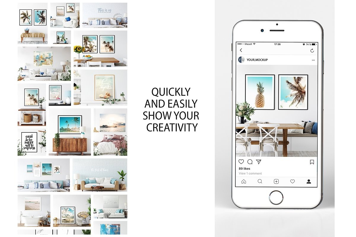 Perfect for Branding your creation or business. Frame & Wall Mockup good to use for shop owners, artists, creative people, bloggers, who want to advertise or show their latest design!