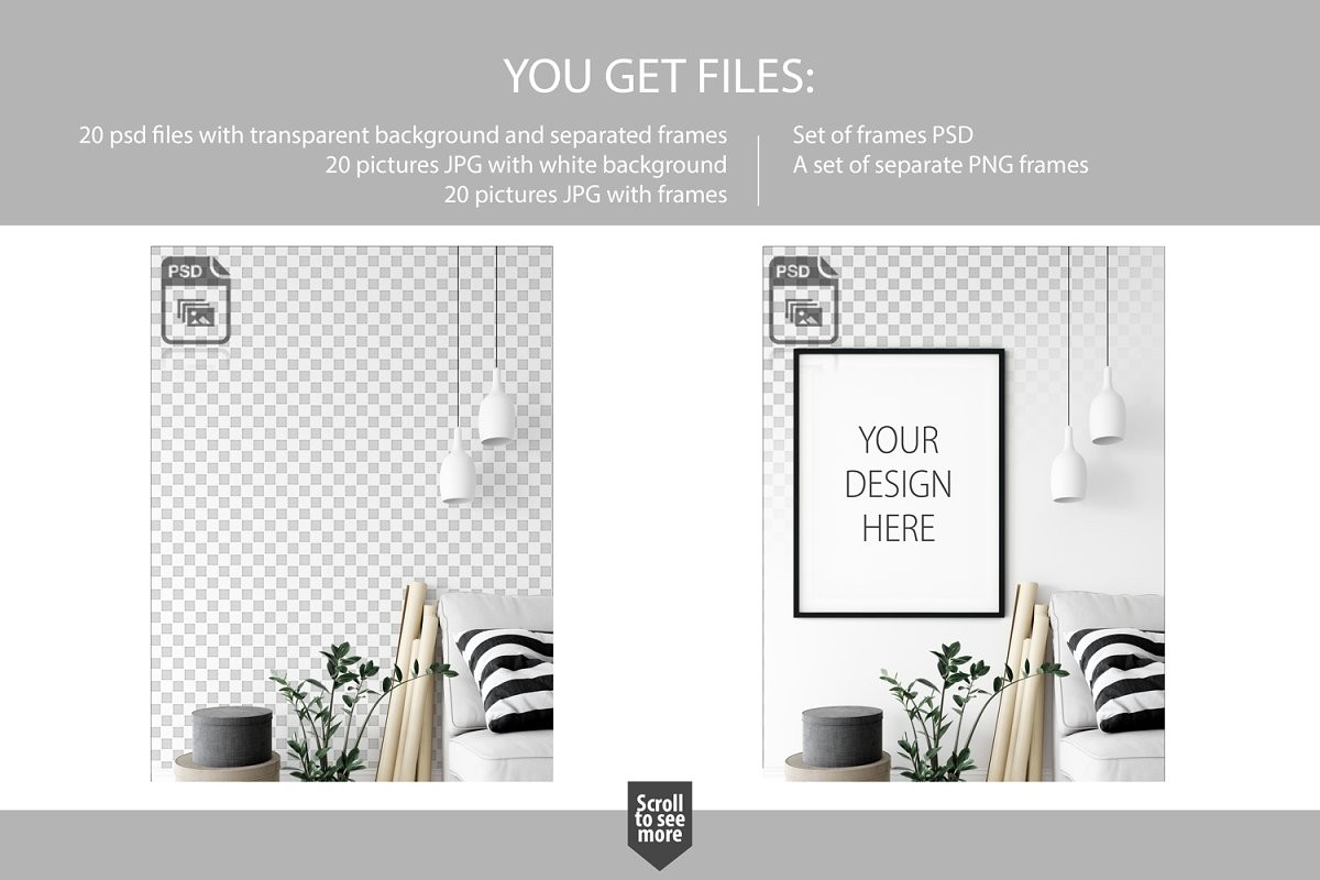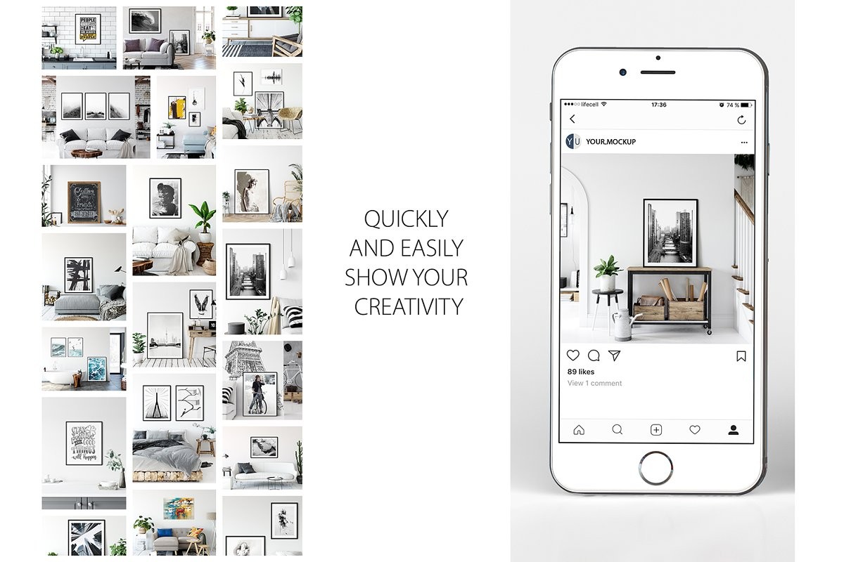 Perfect for Branding your creation or business. Frame mockups good to use for shop owners, artists, creative people, bloggers, who want to advertise or show their latest design!