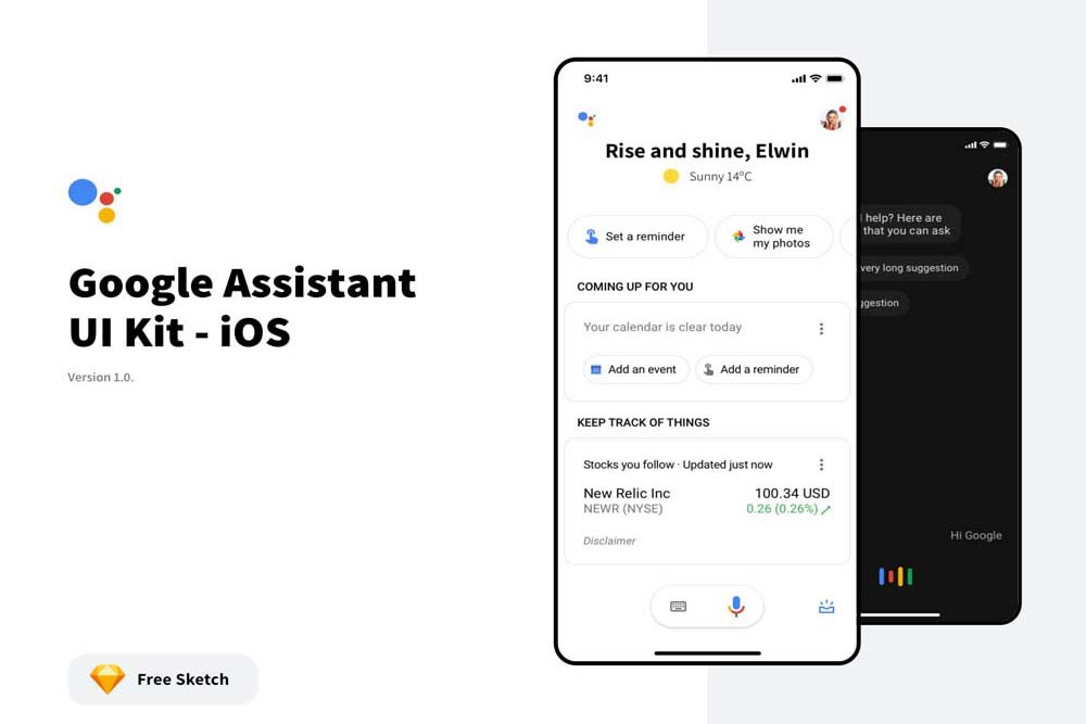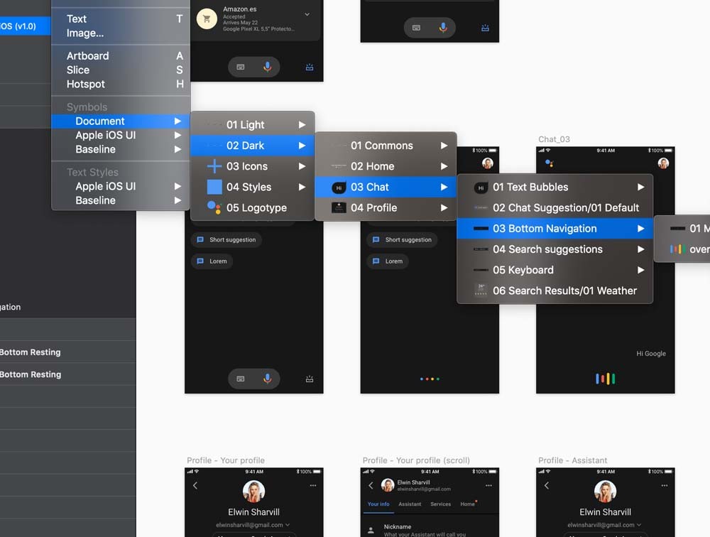 This is a first version of the Google Assistant Free UI Kit in its iOS version. In this file, you will find the light version and also a dark version concept following the rules that Google has published recently for dark themes. All the components are built in symbols considering different cases and it's pretty easy to scale or evolve at your own.