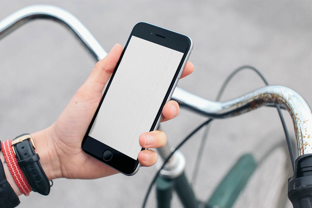 High resolution mockup of the iPhone 6 on a snazzy bicycle.