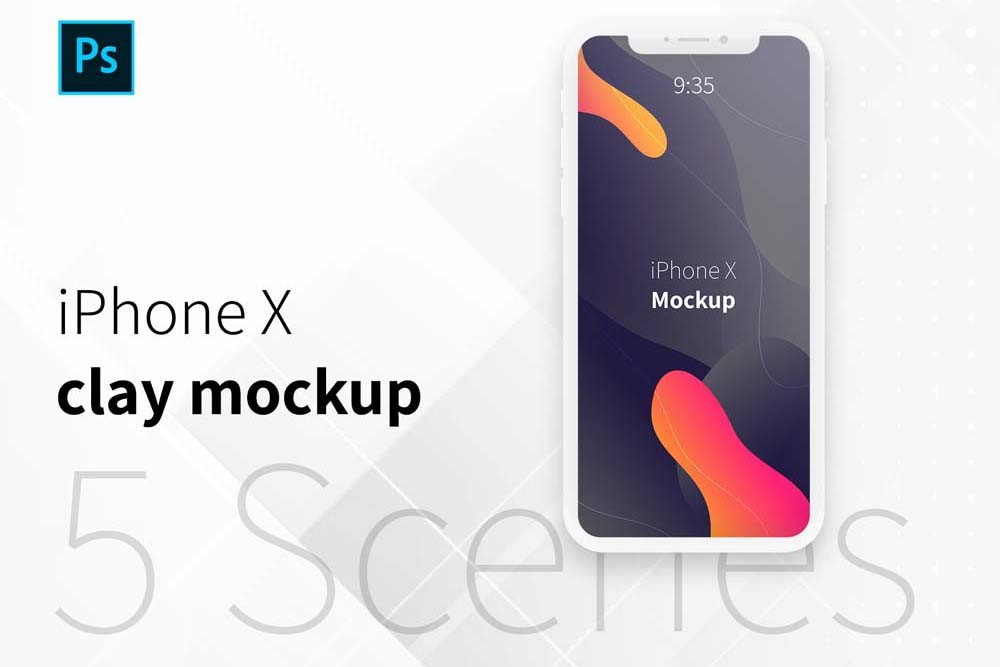 iPhone X Clay mockup for presenting your beautiful designs. In package you will find 5 unique scenes for you to choose and adjust from. Scenes are fully editable with vector layers for scalability (You can scale them up and down without lost in images quality). To place you designs just double click on dedicated layer or simply drag and drop them.