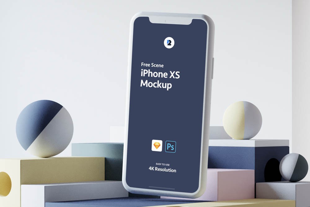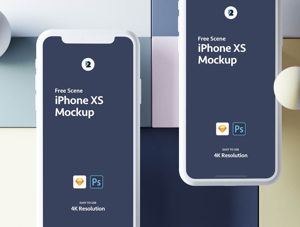 iPhone XS Scene Mockup 4K Resolution 3840x2160 px For Sketch and Photoshop Free for personal and commercial projects