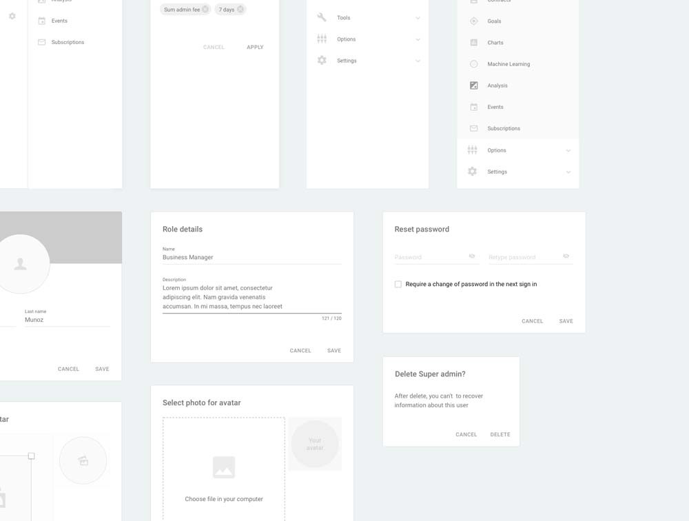 Dashboard Wireframe Kit for Sketch. Start your web project right with Material kit, made your wireframes or prototypes easily and faster. Simple wireframe kit with all the elements that you’ve ever