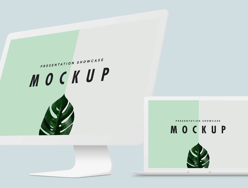 A clean and minimal Macbook Pro & iMac mockup template. Crafted by Abdullah Md Ishmam.