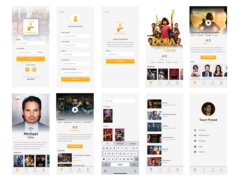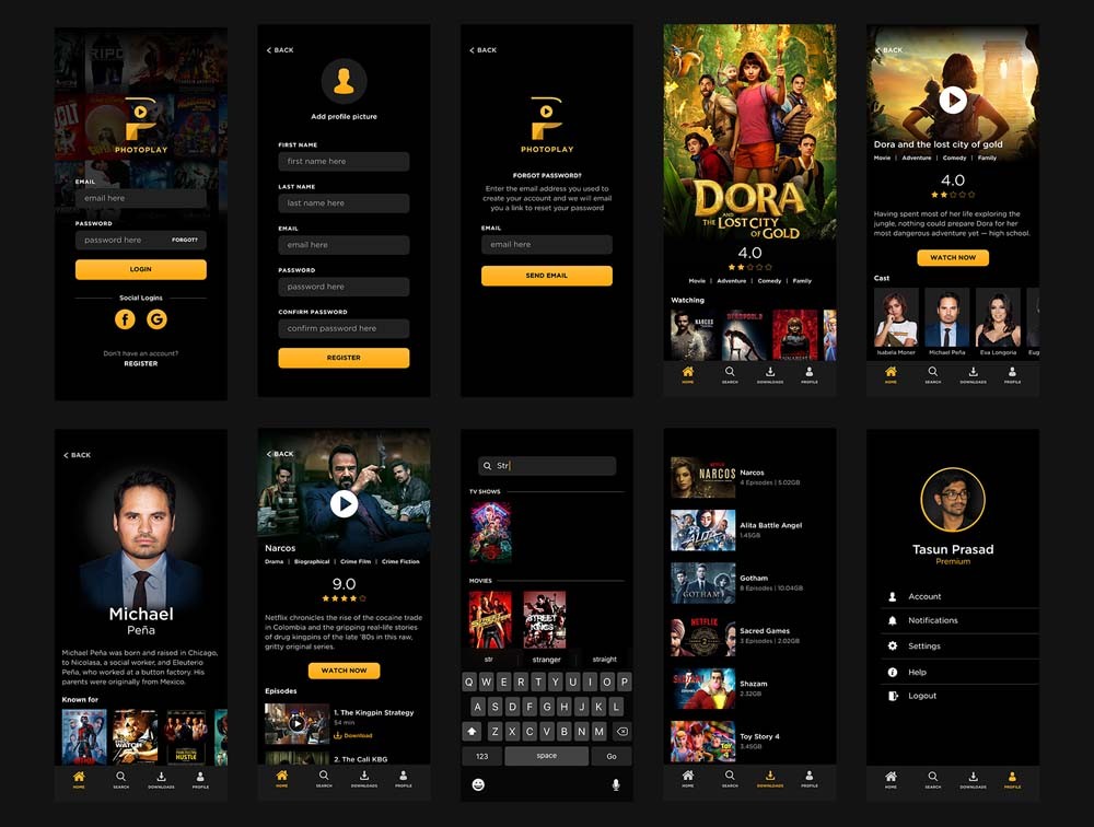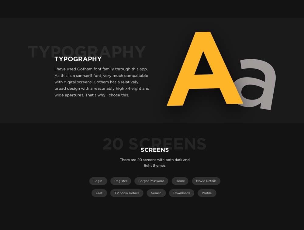A Movie and TV Show streaming mobile UI kit for FREE! There are 20 screens with both dark and light themes