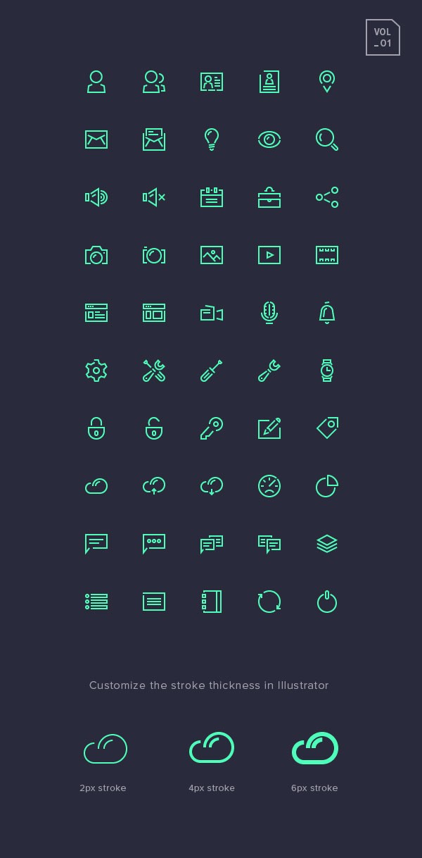 Today we’re launching Stroke Gap, a new icons collection from UI designer Vlad Cristea. The set includes 50 icons with sharp strokes and small accent gaps, perfect to add a distinctive look and feel to your projects. The AI file comes with editable strokes so you can easily adjust the thickness of each icon.