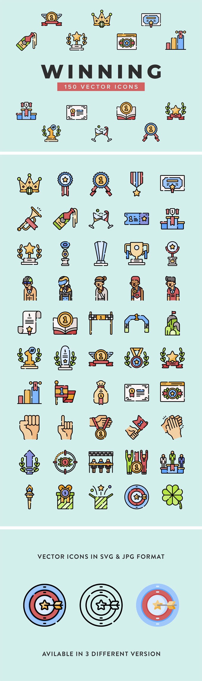 We're sure you know the taste of victory but have you ever expressed it in the language of vector icons? It's your chance to do so by downloading this very free collection for your project.