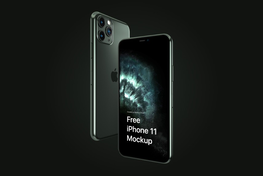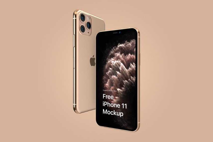 Customizable and easy to use iPhone 11 Pro Max mockup, in five color options: midnight green, space gray, gold, silver, and clay colors. Fully separated shadows and changeable background. This free scene is part of the iPhone 11 Pro Max Mockup Kit, that you can purchase in our store.