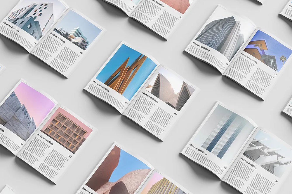 A super-clean mockup that’s perfect for presenting magazine layouts and content. Completely organized and high-res PSD file (5000 x 3750 px at 300 dpi) with several smart layers for each page.