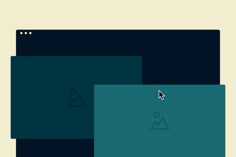 A full-width figure element, with floating images distributed in a 3D space.