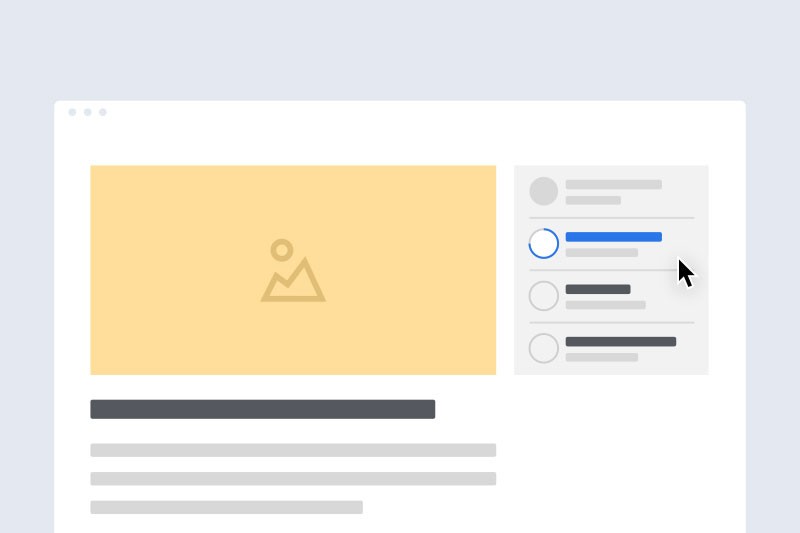 A widget containing a list of suggested articles, with a reading progress indicator powered by SVG, CSS and jQuery.
