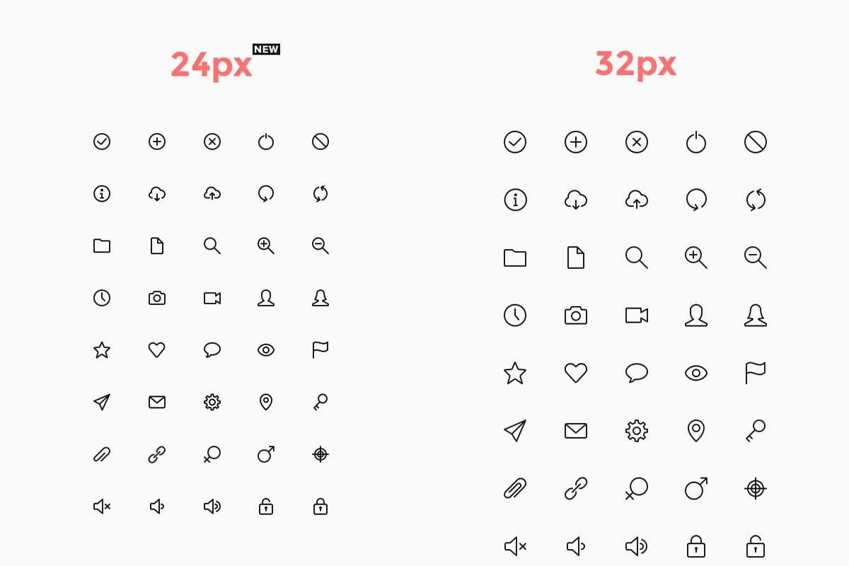 Here’s a set of 40 simple stroke icons that are great for mobile applications, websites, user interfaces and more. All icons are pixel perfect, fully scalable vector shapes available in two sizes, 32px and 64px.