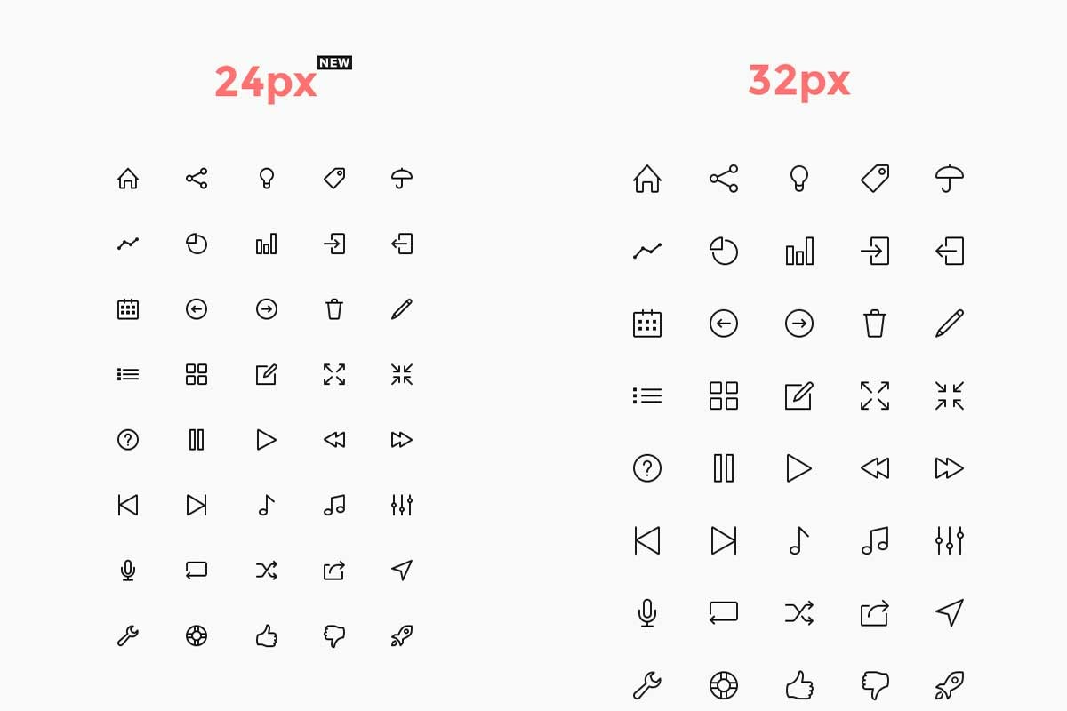The second volume of stroke icons collection with 40 new icons to use in your websites, apps and user interfaces. All icons are pixel perfect, fully scalable vector shapes available in two sizes, 32px and 64px.