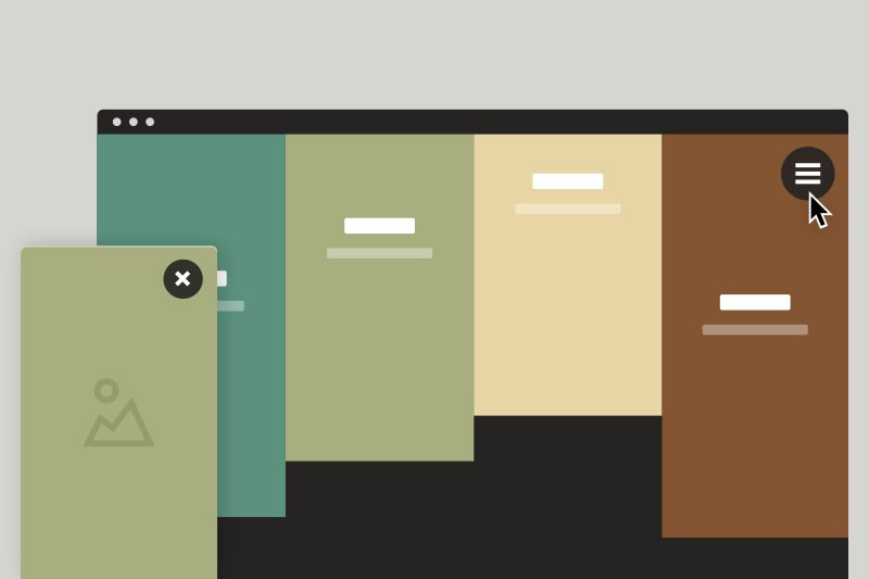 A simple portfolio template, with project preview images that slide out to reveal the selected project.