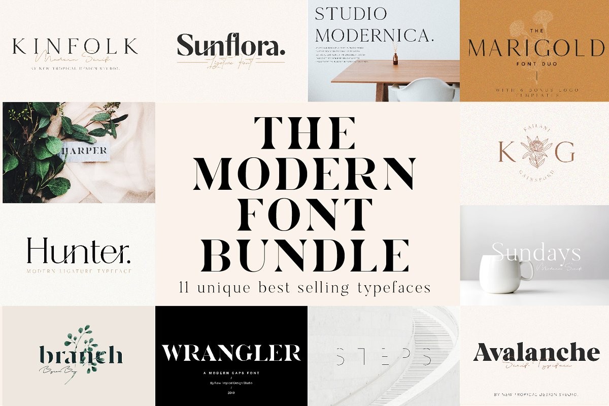 Save heaps of $$$ with the new Modern Font Bundle. All my best selling unique fonts for only $29! There are Serif, Non Serif and Experimental fonts all with that modern stylish look. No boring fonts filling up space, just 11 chic and unique typefaces plus 6 feminine logos thrown in.