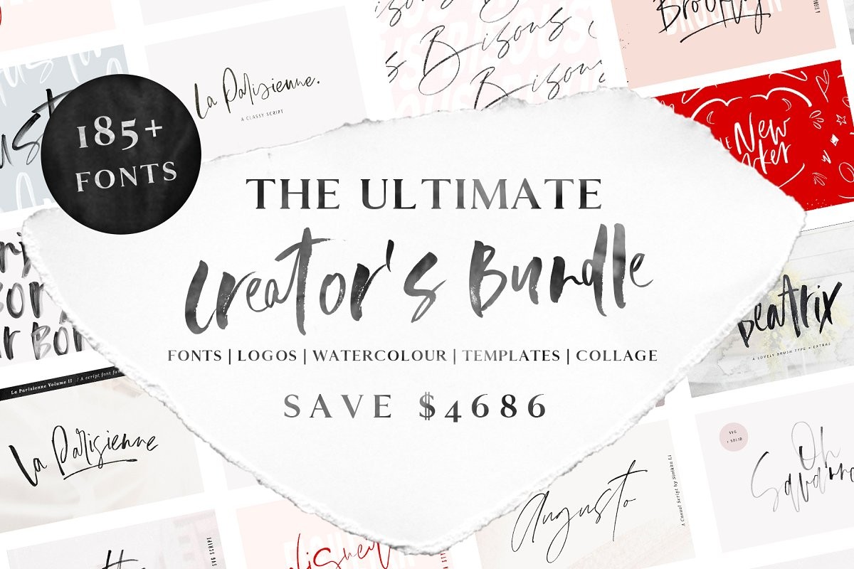 This bundle includes ALL FONTS AND A LOT OF EXTRAS! It is perfect for signature logos, invitation cards, business cards, inspirational quotes, posters, blog headers, wedding design, packaging, wall art, custom printables and a lot more!