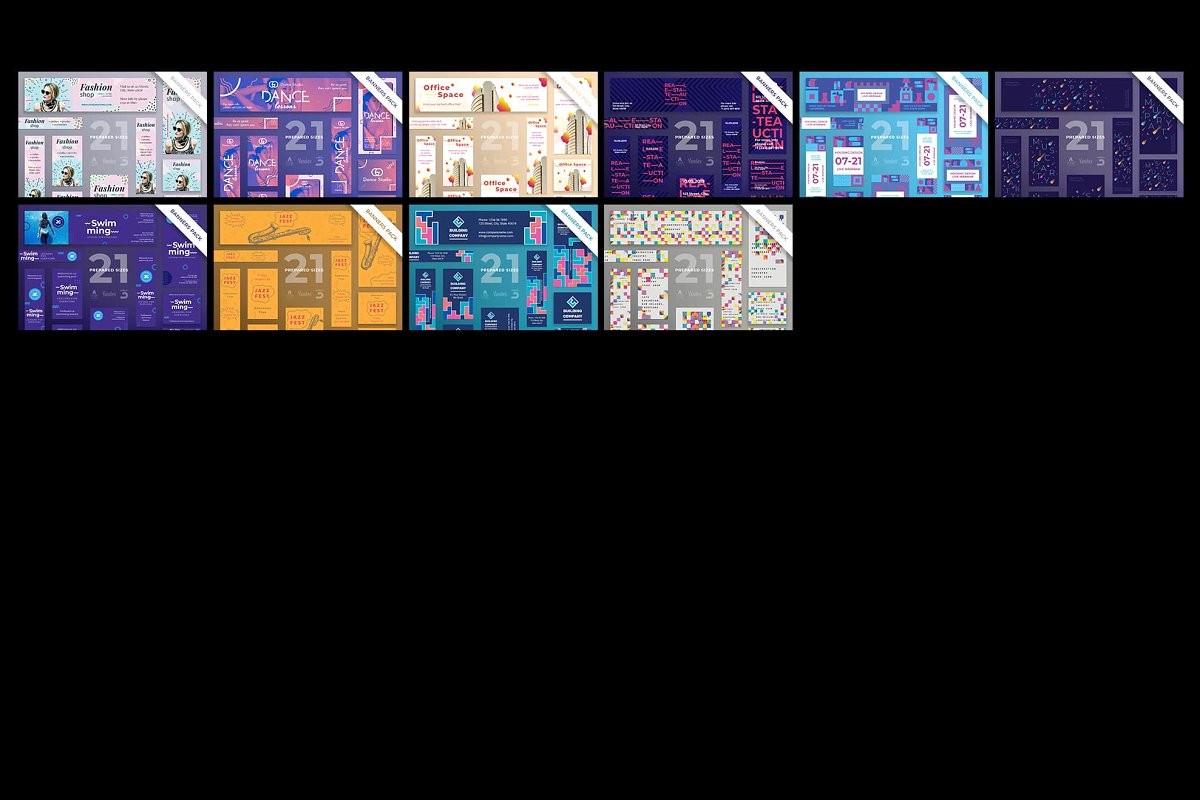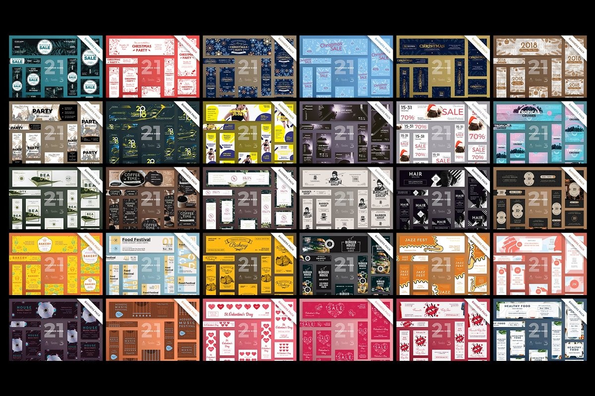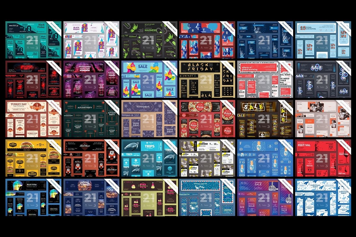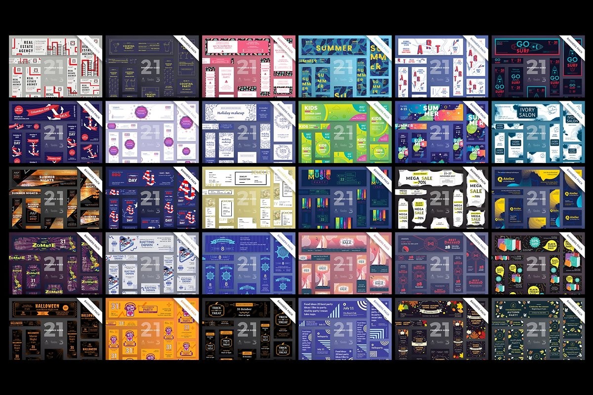 Web Banners Bundle consists of 2730 templates. You'll get 130 design ideas in 21 formats, so you'll surely find the one you need. All the templates are easy to edit and customize. Use them as the are, or mix and match to create your own unique variant.